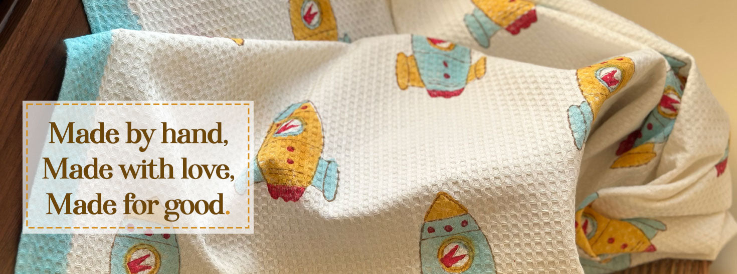 KOLVI is born from a deep passion for local art and craft, with a mission to empower rural artisans. Our founder, who spent nine years in the world of investment banking across the UK, Dubai, and Mumbai, was inspired by their 4-year-old son's birth in Dubai and the subsequent move to India. The journey began when they struggled to find high-quality, safe, and affordable bedding options for their child.
