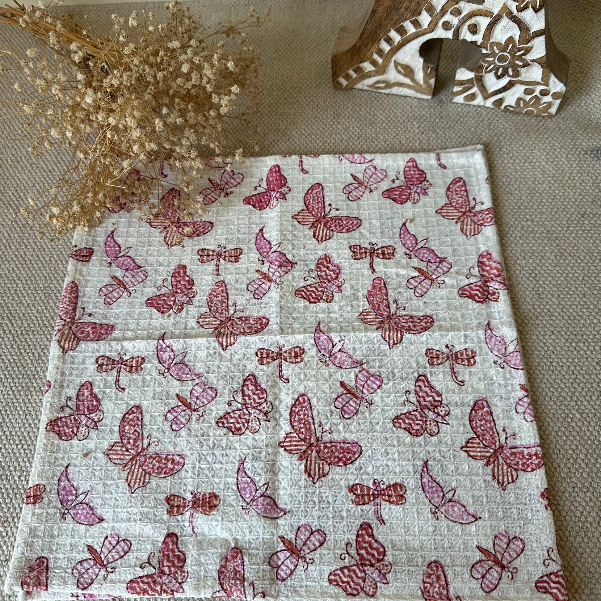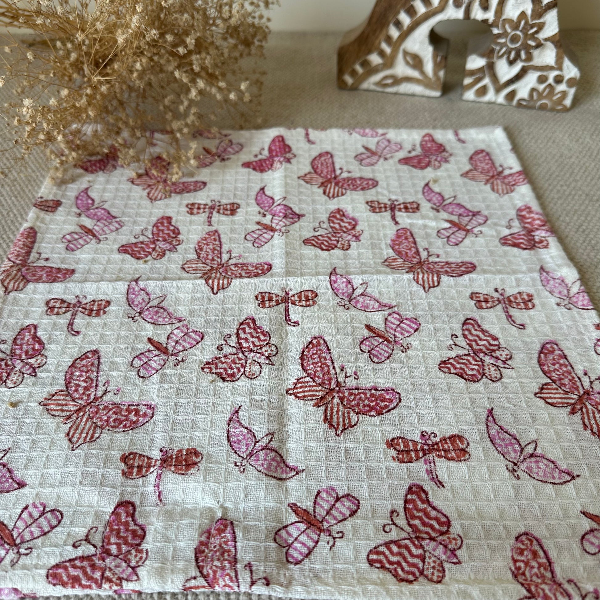 - Premium cotton blockprinted Waffle Face Towels that feel super gentle on the skin.