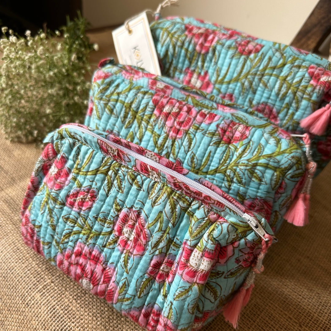 - Introducing our quilted bright cotton fabric multipurpose pouches for everyday use with colourful tassels.